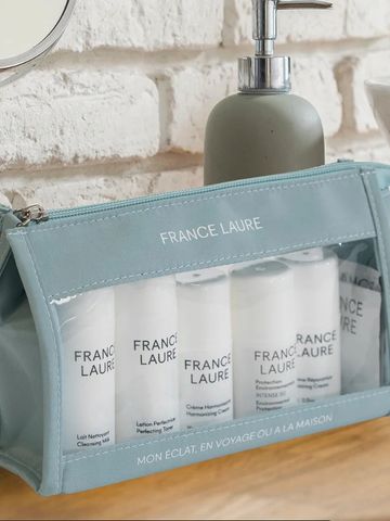 Que vous voyagiez ou que vous souhaitiez explorer la collection Régénérer, cette trousse de voyage rassemble l'essentiel.